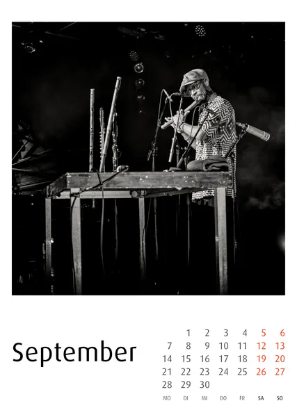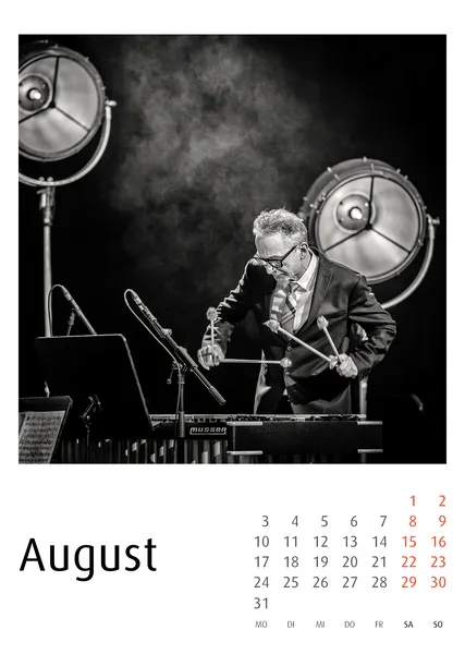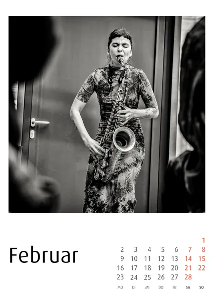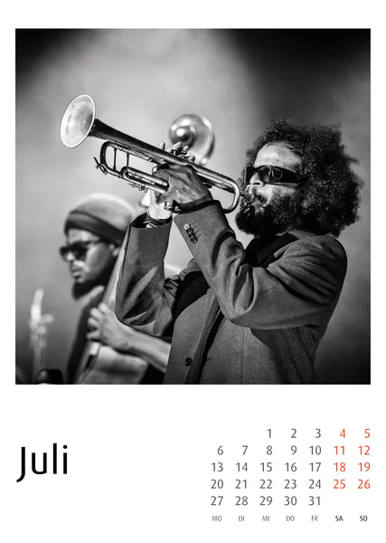 Die Jazzkalender 2027 basieren auf konsequenter Schwarzweiß-Fotografie. Reduktion auf Ausdruck, Gestik, Licht und Struktur prägt die Bildsprache.